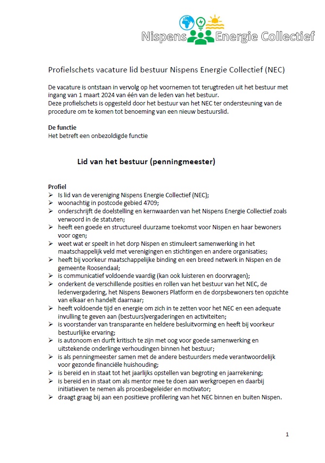 Vacature Bestuurslid NEC